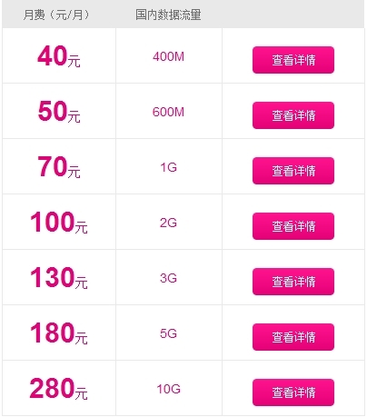 通过与移动流量套餐相比,移动的最低套餐为40元400M,起点更低。其他套餐方面,中国移动与中国电信基本是相同的。