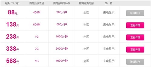 飞享套餐则是自选套餐的组合,最低88元,最高588元,套餐没有自选套餐那么灵活。