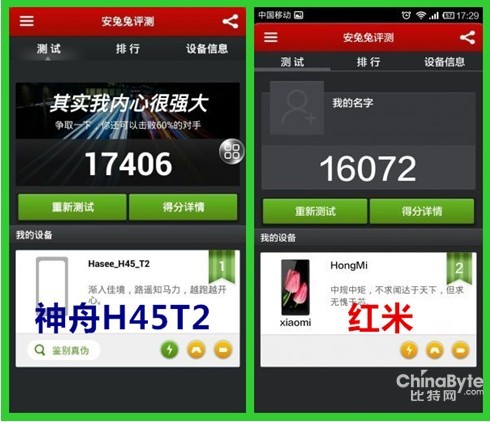 图:神舟H45T2跑分完爆红米