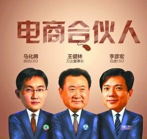 中国合(土)伙(豪)人的故事一直在上演。今天,传闻已久的万达电商终于落地,万达、百度、腾讯在深圳正式签约,三家宣布共同出资并在香港注册成立万达电子商务公司。一期投资人民币 50 亿元,万达集团持股 70%,百度、腾讯各持 15% 股权。万达集团董事长王健林,百度 CEO 李彦宏,腾讯 CEO 马化腾共同出席。奢侈品电商佳品网原 COO 董策将出任万达电商的新 CEO,万达电商已注册的新名字,将在全面上线时正式公布。