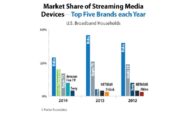 研究公司Parks Associates刚刚发布了在市场上最主要的品牌一些新的数据,提到了机顶盒和电视.棒 (通过9 to5google)。