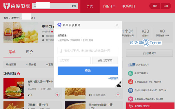 趋势网(微博|微信)讯:订餐网站优劣盘点:哪个网络订餐平台最好用?什么网上订餐最实惠?百度外卖O2O对比淘宝外卖淘点点、美团外卖、饿了么、外卖超人,百度外卖在线点餐时要登记注册什么信息?百度外卖代金券怎么领?