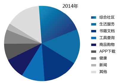 优质的移动资源中,综合社区类、生活服务类、书籍文档类比重最高。