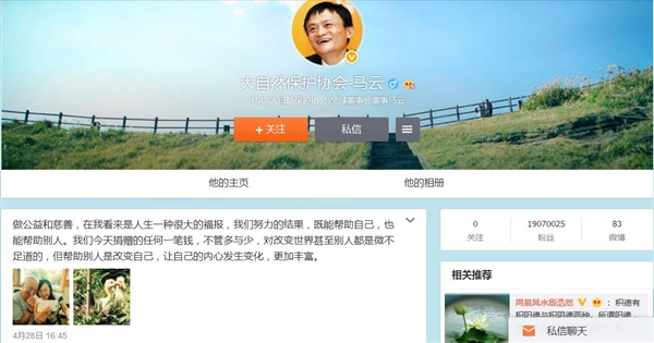 “做公益和慈善,在我看来是人生一种很大的福报,我们努力的结果,既能帮助自己,也能帮助别人。”荣获中国首善的马云当天更新了他的微博,“我们今天捐赠的任何一笔钱,不管多与少,对改变世界甚至别人都是微不足道的,但帮助别人是改变自己,让自己的内心发生变化,更加丰富。”