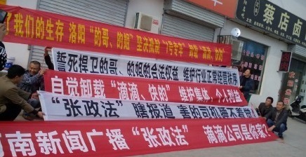 发现有外地人使用打车软件,引起了更多本地出租车司机的愤怒,于是大批司机将车开到到位于310国道附近的滴滴打车洛阳办事处,要求滴滴的工作人员把异地营运者的打车软件卸载,但遭到工作人员的拒绝。