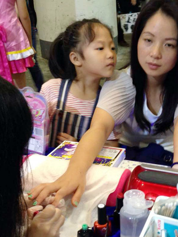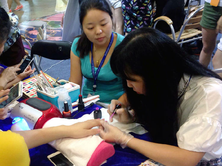 (我们的美甲师十分专注地为获奖的玩家做棒棒的美甲~)