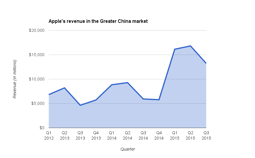 华尔街的恐惧都是源于中国的股票市场在 7 月 9 日崩溃的结果,这被认为是自全球金融危机以来的最坏的状况。苹果公司季度收入显示中国市场成为第二大下降地区(其余的亚洲太平洋与第一名相差 30%) ,对于这种情况投资者惊呆了。