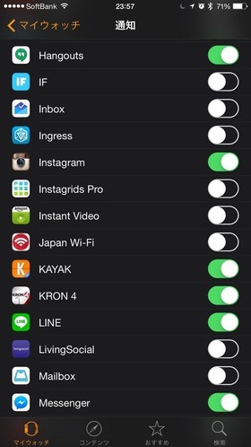 The App's notification in the Apple watch can be freely setting up.The APP,such as the Tumblr、Echofon always conveyconstantly notices,but we set it off. Too much notifications will make the Apple watch continully vibrate and consume the electricity .At the same time,the notifcation will convey to the iphoneafter setting off.