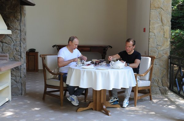 运动完毕,普京和梅德韦杰夫在露台品茶共进早餐,其中一部分早餐是两位自己准备的。品茶期间,他们讨论了一系列迫切问题。如西方经济制裁加上石油和卢布暴跌,使俄罗斯2015年GDP增长预估要减少3%以上,也是普京支持率有所下降等等。有报社分析,普京这次再度公开秀肌肉,是要为自己的形象加分。