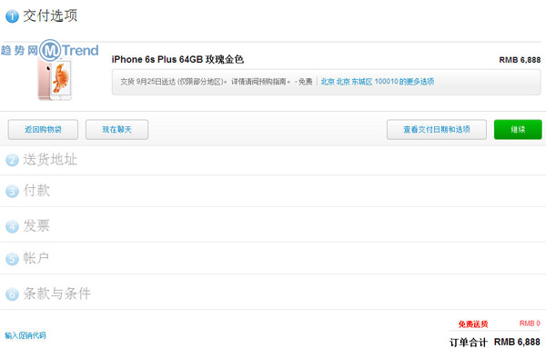趋势网(微博|微信)讯:成功抢到玫瑰金iPhone6s Plus!Apple中国官网iPhone6s发售放货发货配送流程规定,订购iPhone必须知道的十大因素优劣!