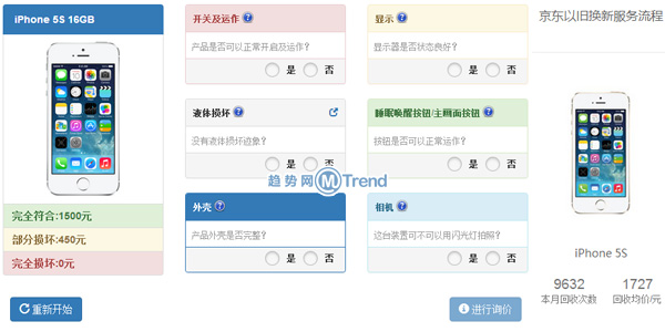 趋势网获悉京东办理iPhone6s以旧换新手续: