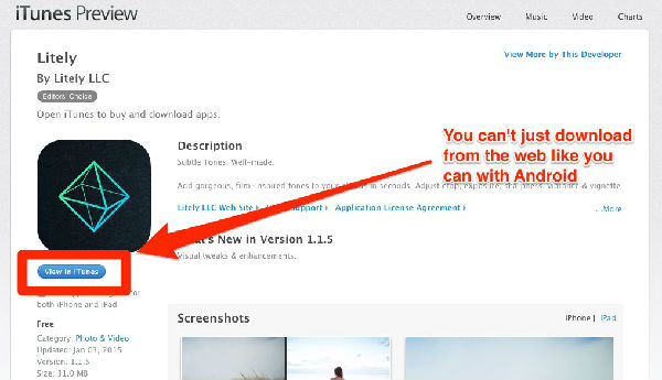 7.谷歌app store让用户直接从官网下载应用至手机。若想在浏览器里搜索一个iPhone app,你必须登录iTunes或App Store才能下载安装。