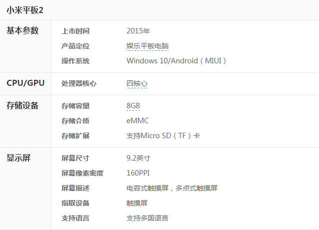 具体配置,小米Mi Pad 2搭载Intel Atom x5-Z8500,主频2.24GHz四核芯片,采用7.9英寸触控屏,分辨率达到2048x1536像素;标配版2G内存+16G存储,高配版3G内存+64G存储。