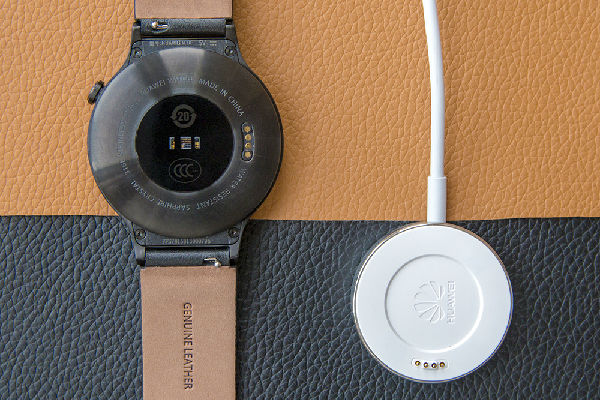 HUAWEI WATCH与Apple Watch一样采用磁吸式充电接口,也就是大家所说的无线充电,笔者对那些表盘带有MicroUSB充电口的智能手表产品异常反感。另外,华为手表内置300mAh电池,保持蓝牙链接重度使用的话续航一般在一天以内,单纯待机和常规记录功能使用续航时间达到3天左右。当然,相对传统机械手表,使用者就需要重新习惯给手表充电了。