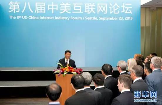 2015年9月23日,国家主席习近平在西雅图微软公司总部会见出席中美互联网论坛双方主要代表并发表讲话。新华社记者黄敬文摄