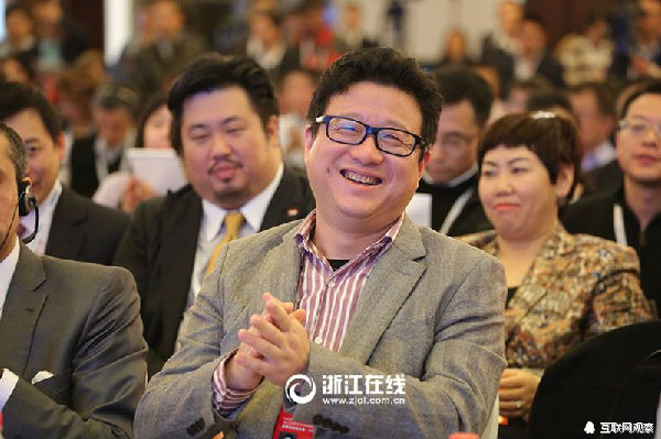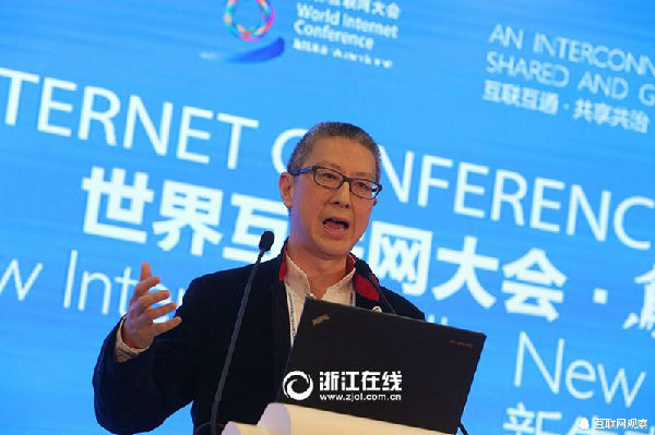 优酷土豆股份有限公司董事长兼首席执行官古永锵在台上发言