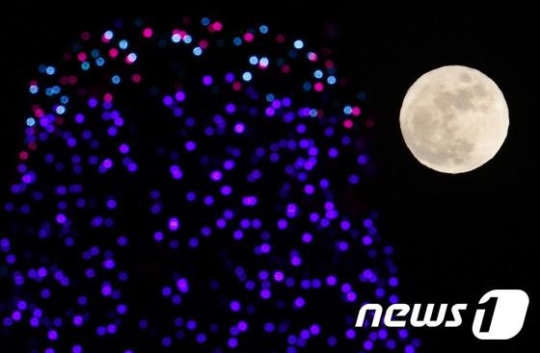 趋势网(微博|微信)讯:圣诞夜25日晚市厅前的首尔广场树后被唤作幸运门的圆月发出耀眼明亮的光芒,幸运门就是指在圣诞日升起的圆月。1977年后,时隔38年,我们再次目睹了这一幸运门。