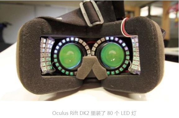 根据设计的算法,这些LED灯会随着虚拟现实游戏或者影片的灯光效果实时变换颜色和光线的密度。由此,Oculus Rift DK2 的实际观看视角被扩充到 150 度。