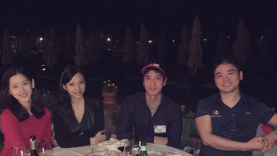 王力宏在微博晒出自己与妻子和刘强东夫妇聚餐的照片,并表示:“太阳谷最后的晚餐和好朋友相聚 @刘强东”。照片中王力宏夫妇坐在中间,而刘强东和奶茶妹妹坐在边上,奶茶妹妹一身红裙十分抢眼。