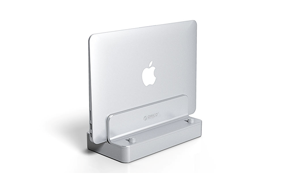正面看起来,ORICOANS6就是一款笔记本立式桌面支架,这是其功能之一。底面长宽仅为185mm*98mm,帮助用户节省宝贵的桌面空间。全铝合金材质+阳极氧化工艺打造的ANS6整体设计简约,质感强烈,与苹果Mac系列电脑相得益彰。