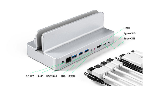 日常使用时若搭配台式机/普通不支持PD的笔记本等设备,直接使用DC12V接口即可使用;而如果搭配支持PD功能的笔记本——比如苹果、华为笔电以及最新的小米笔记本等,需要给笔记本进行反向供电时,就可以使用笔记本原装充电器或者是支持TYPE-C PD功能的充电器通过TYPE-C C to C数据线插到收纳支架中的TYPE-C PD接口,给到笔记本进行电力供应。双供电模式在尽可能提供兼容性的同时也保持了灵活性,扩展了使用场景。