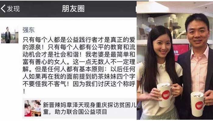 刘强东微信朋友圈发飙:不许在我面前提到奶茶妹妹,否则不要怪我不客气!