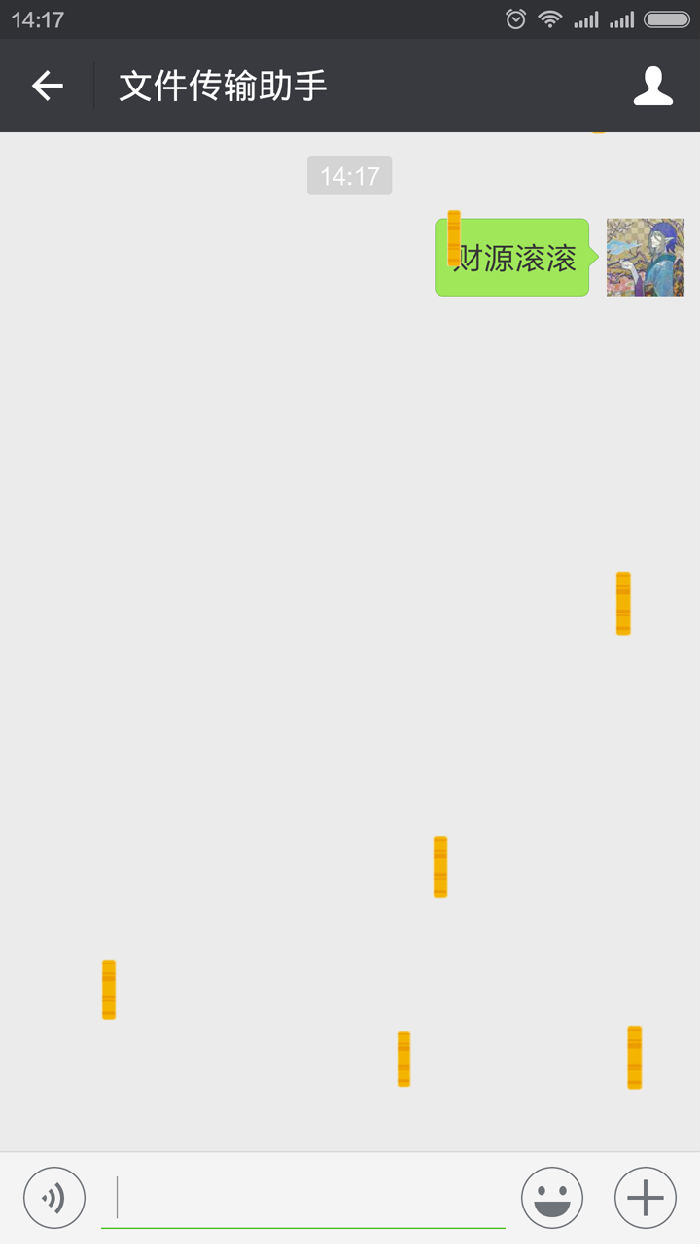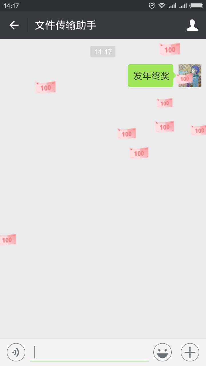 而且掉下来之后还会弹一弹,什么时候微信的程序员能给加个音效,一定把这个表情雨玩一百遍。