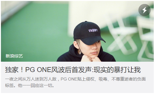 趋势网(微博|微信)讯:今天中午,新浪综艺发布文章《独家!PG ONE风波后首发声:现实的暴打让我更懂注意言行》。