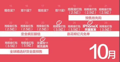 双11期间,天猫更将启动高达6亿的现金红包玩法,还将联合品牌商向全球线上线下消费者发放百亿元的购物津贴!