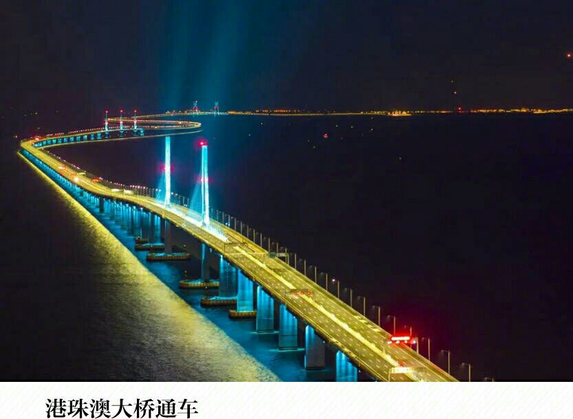 10月24日,港珠澳大桥正式通车运营。这座大桥跨越伶仃洋,东接香港,西接广东珠海和澳门,总长约55公里,集桥、岛、隧于一体,被国外媒体誉为“新世界七大奇迹”之一。