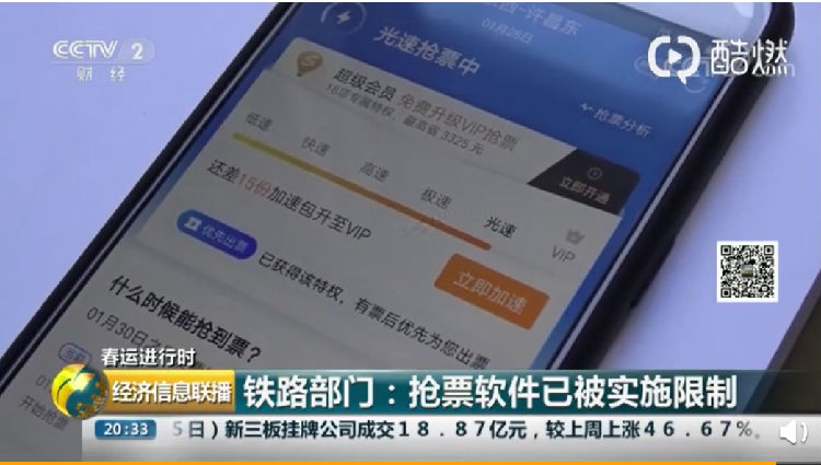 随着春节的临近,车票也是愈发紧张,一些人为了买到回家的车票求助抢票软件。央视财经最近发布 新闻 称,目前市面上流行的抢票软件已经被识别并被实施限制措施。