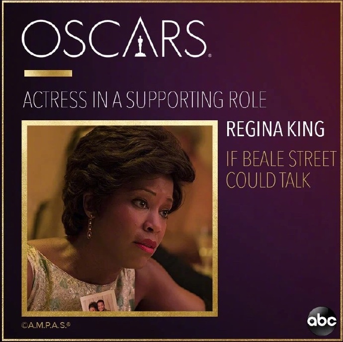《假如比尔街能够说话》中的蕾吉娜·金首次入围表演类奖项即击败凭借《宠儿》入围的艾玛·斯通和蕾切尔·薇姿斩获最佳女配角奖。