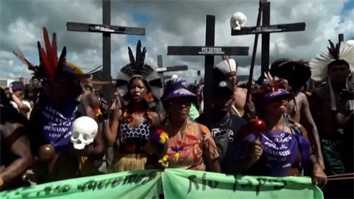 Thousands of Indigenous protesters from across Brazil marched in Brasilia as part of the 22nd edition of the Free Land Camp protesting against legislation they claim threatens their constitutional rights and ancestral lands